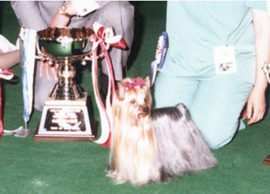 The most famous Yorkshire Terrier of modern times in the UK was CH Blairsville Royal Seal. He was by CH Beechrise Surprise and his dam was CH Blairsville Most Royale. "Tosha" to his friends (of whom he had many) was bred, owned and handled by Mr. Brian Lister and his wife, Rita. Tosha was definitely a 'King' among dogs and no one who saw him flowing around the ring could ever forget him. His prescence could be felt, even by a complete novice, and many say that just thinking of him brings a lump to the throat. During his show career Tosha won 50 CCs, all under different judges. He was 12 times Best In Show at all breed CH shows, and 16 times Reserve Best In Show. He took 33 Group wins, and went Reserve Best In Show at Cruft's in 1978, just as his dam had done before him. Tosha was Top Dog, all breeds, for two consecutive years. He became the sire of many prolific Champions and still features in the pedigree of many of today's Yorkies.